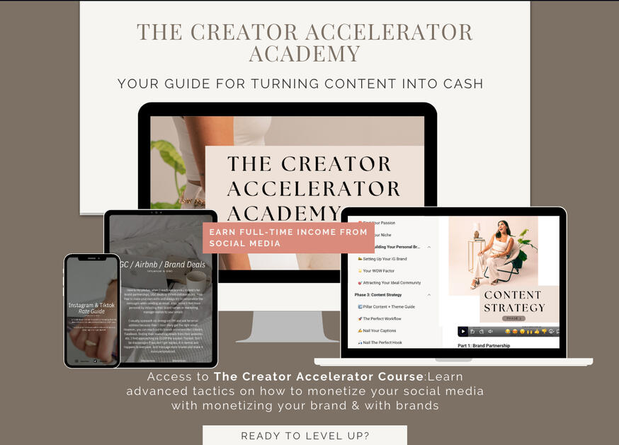 Creator Accelerator Academy teaches you the strategies to build a strong online brand, attract the right audience, and generate income on autopilot. Given a step-by-step roadmap, proven strategies, and a supportive community.
